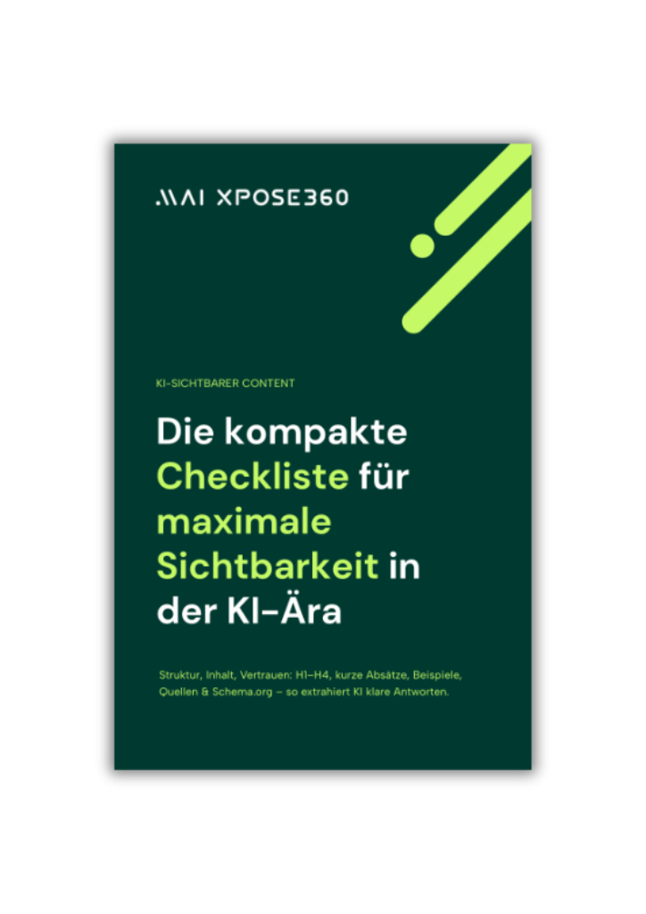 Immer mehr Suchen landen direkt in ChatGPT, Perplexity & Co. – klassische SEO allein reicht dafür nicht mehr aus. Der Leitfaden „KI-gerechte Content-Erstellung“ zeigt Dir, wie Du Deine Inhalte nach AEO-Prinzipien so strukturierst, dass Answer Engines sie als zitierbare Antwortblöcke erkennen. Mit einer praxisnahen Checkliste erhältst Du konkrete Schritte, wie Du Deinen Content LLM-ready machst und Deine Sichtbarkeit im Zeitalter der Answer Engines sicherst.